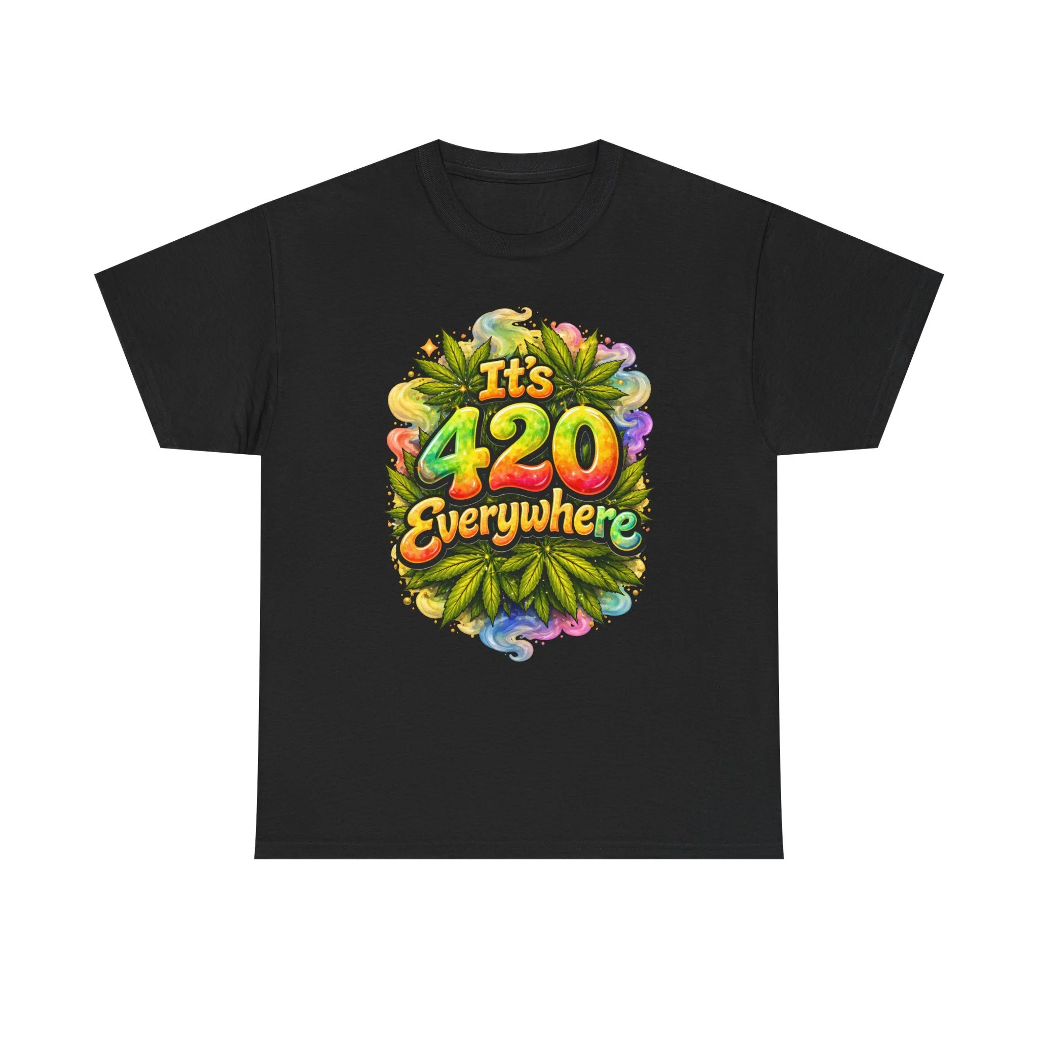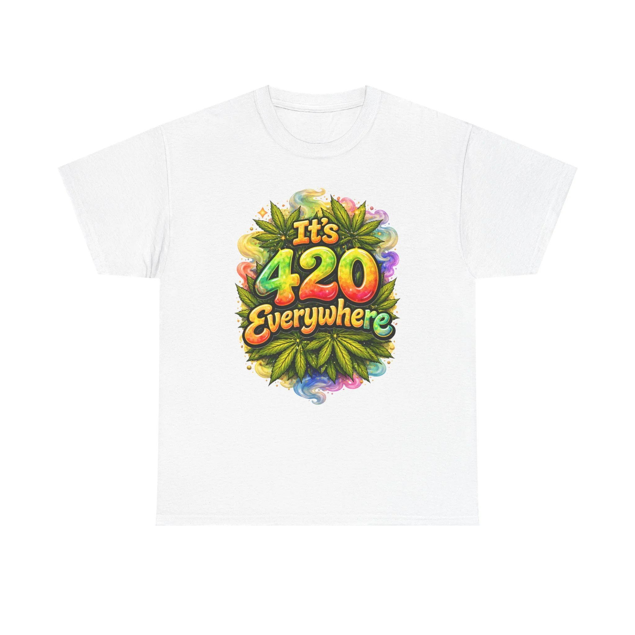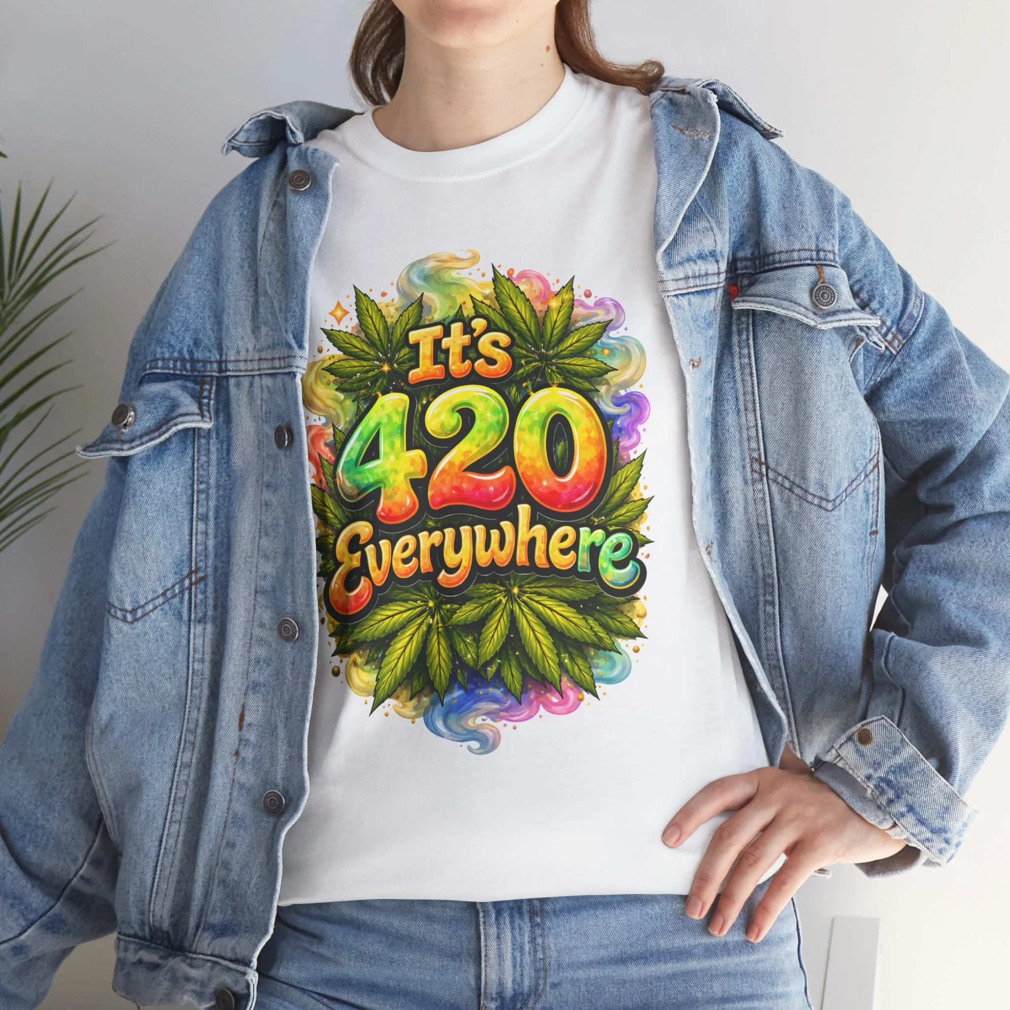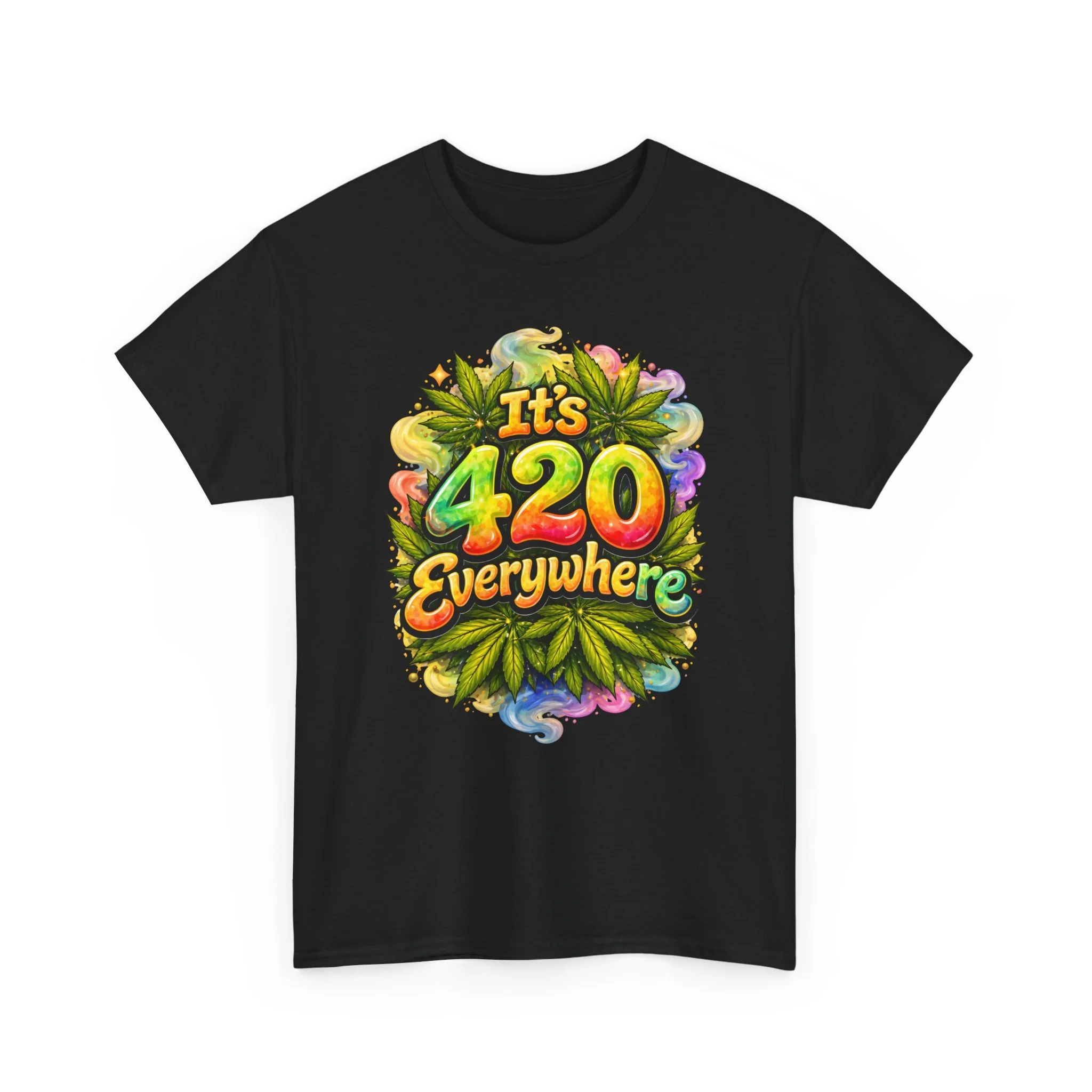 420 Everywhere Graphic Tee — Colorful Cannabis Leaf Stoner Shirt