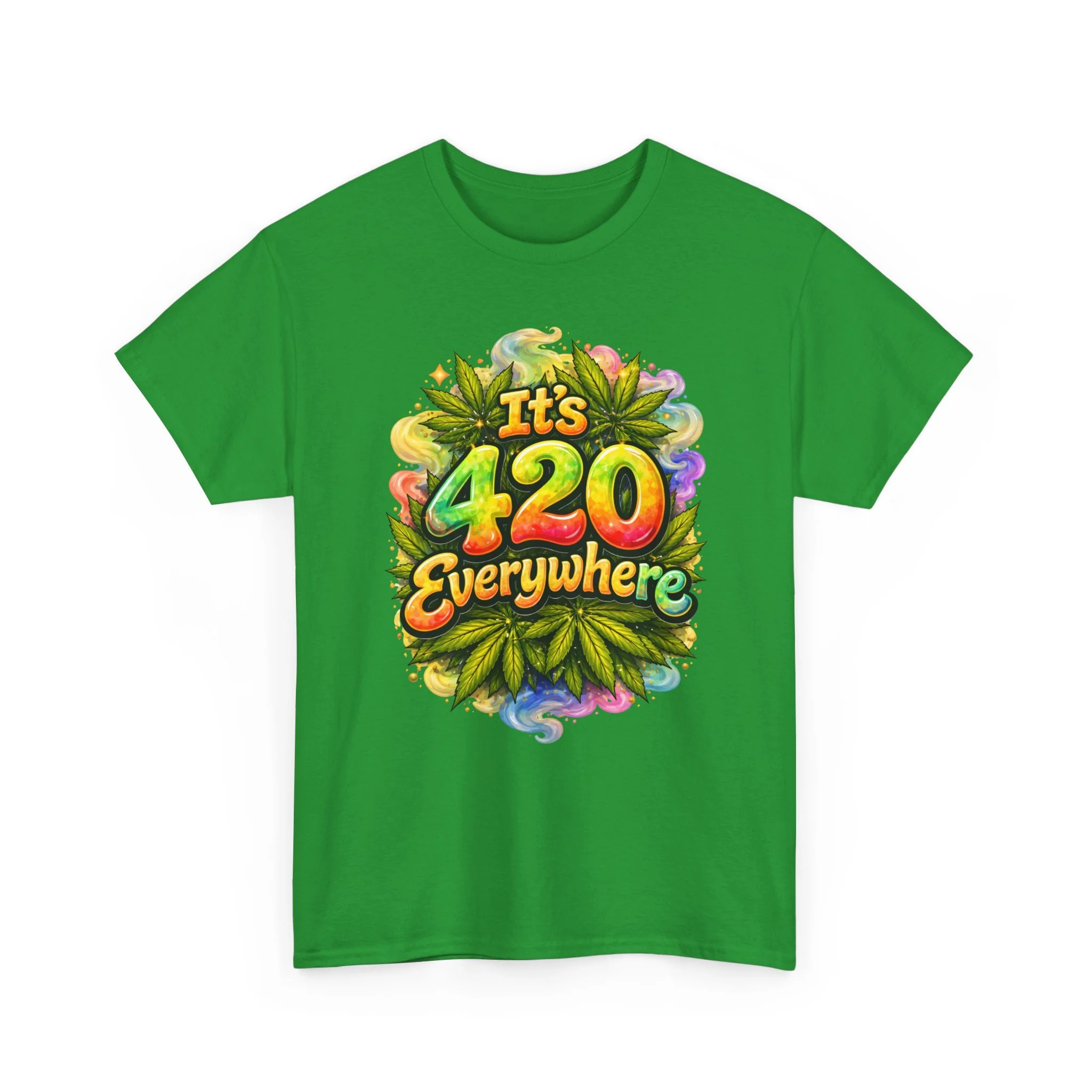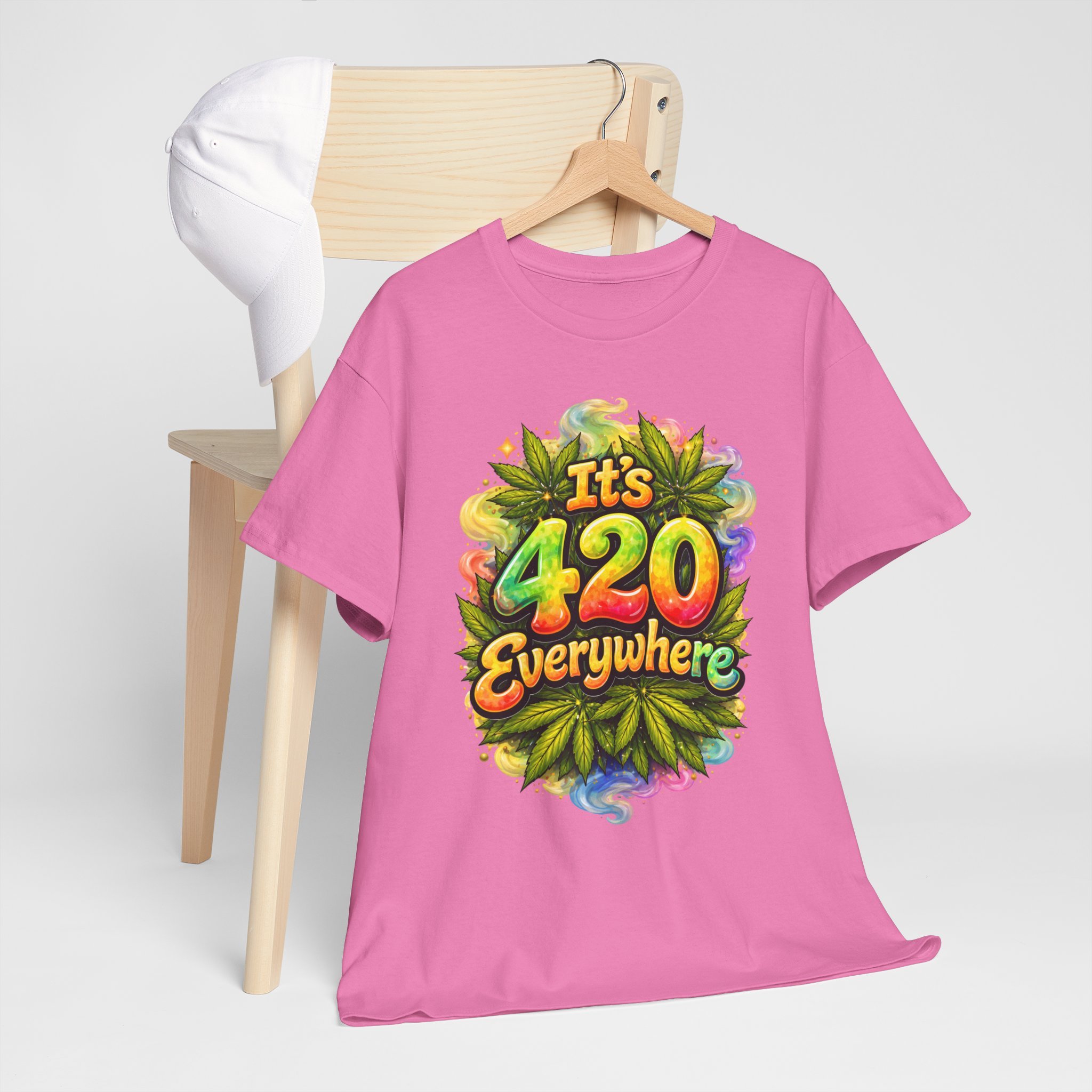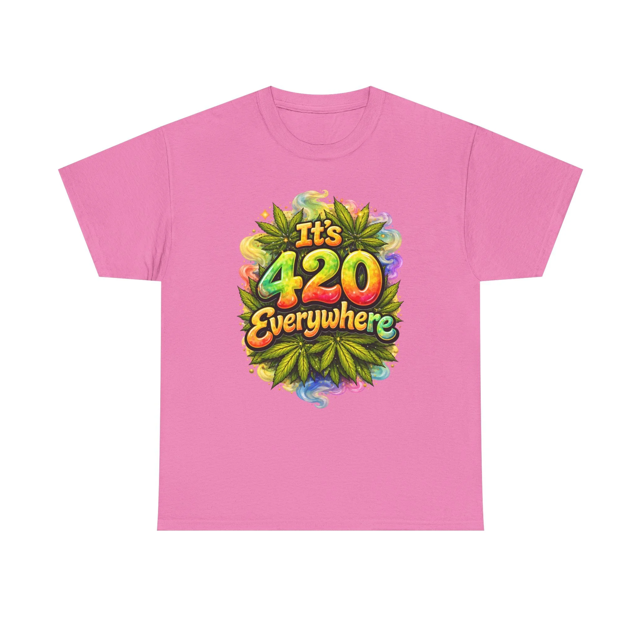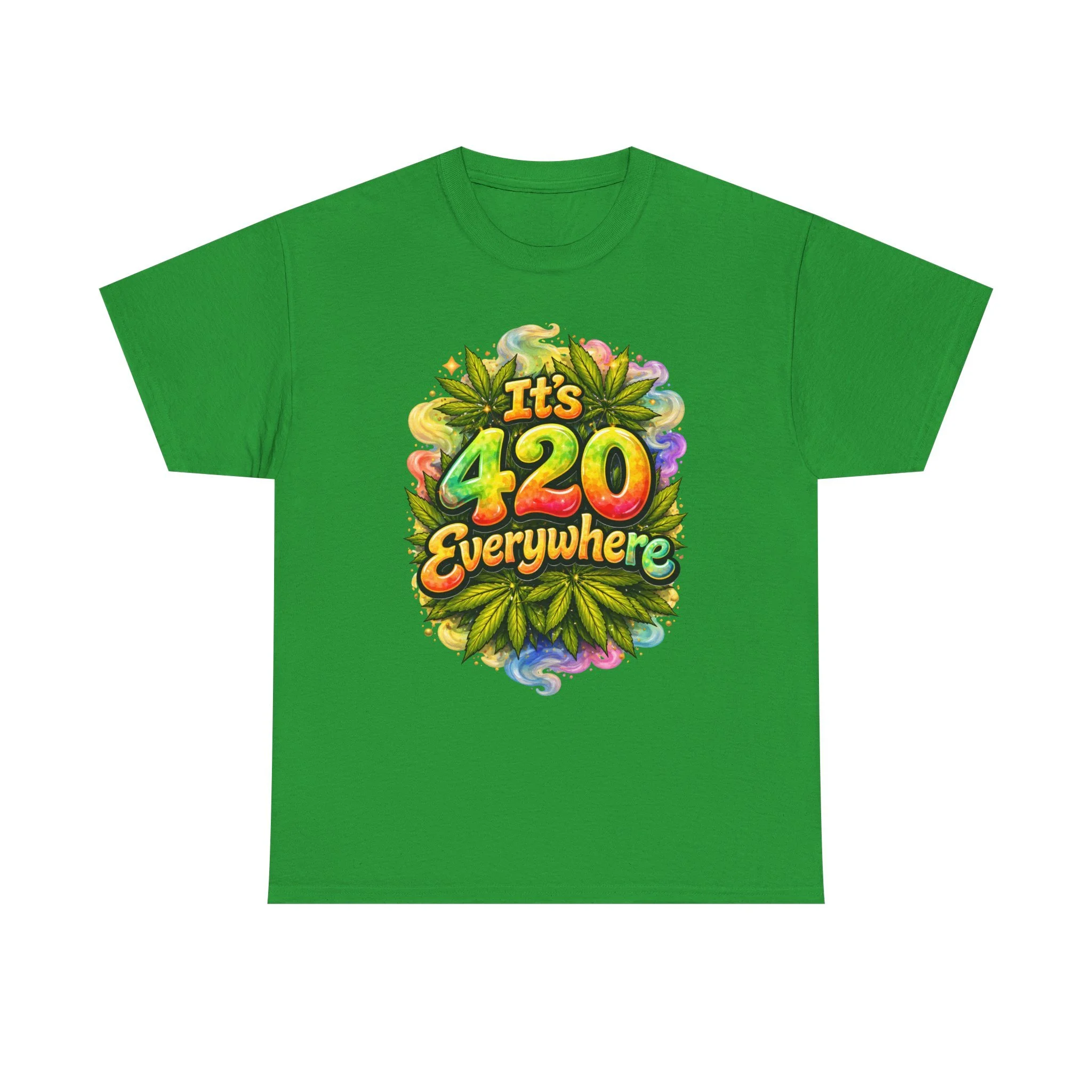 420 Everywhere Graphic Tee — Colorful Cannabis Leaf Stoner Shirt